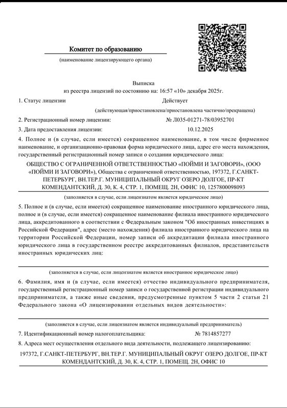 Школа иностранных языков Пойми&Заговори оказывает услуги жителям Санкт-Петербурга. Как в каждой фирме, чья деятельность посвящена образованию, у нас работают высококвалифицированные преподаватели, готовые делиться с нашими клиентами знаниями и проявлять педагогическое мастерство.